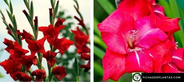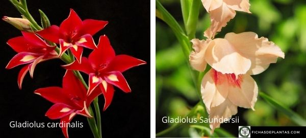 - Gladiolus cardinalis : Flores rojas alcanza un tamaño de 0.6 a 1.2 m de altura