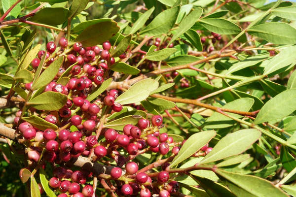 El Lentisco, Pistacia lentiscus, en ingles Mastic tree, es un arbusto o pequeño arbolillo medicinal que muy rara vez supera los tres metros, aunque puede llegar hasta los 7 metros si se le deja crecer libremente.